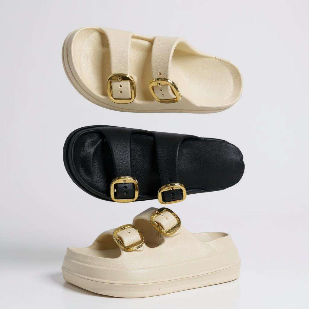 მინიმალისტური დიზაინი, კომფორტული ძირი და ელეგანტური ოქროს დეტალები 💛 იდეალურია ზაფხულისთვის 💫